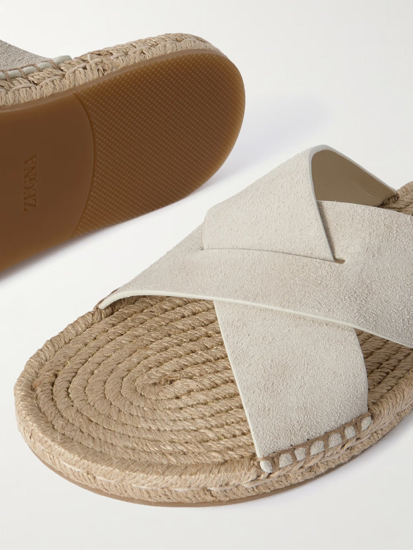 The ZGN Panarea Suede Sandals bring relaxed refinement to warm-weather days. Wide crisscross suede straps offer a secure and soft fit, while the braided jute midsole adds a classic espadrille character to the silhouette. Lightly cushioned heel pads and a rubber outsole deliver comfort and reliable traction from seaside strolls to city leisure.